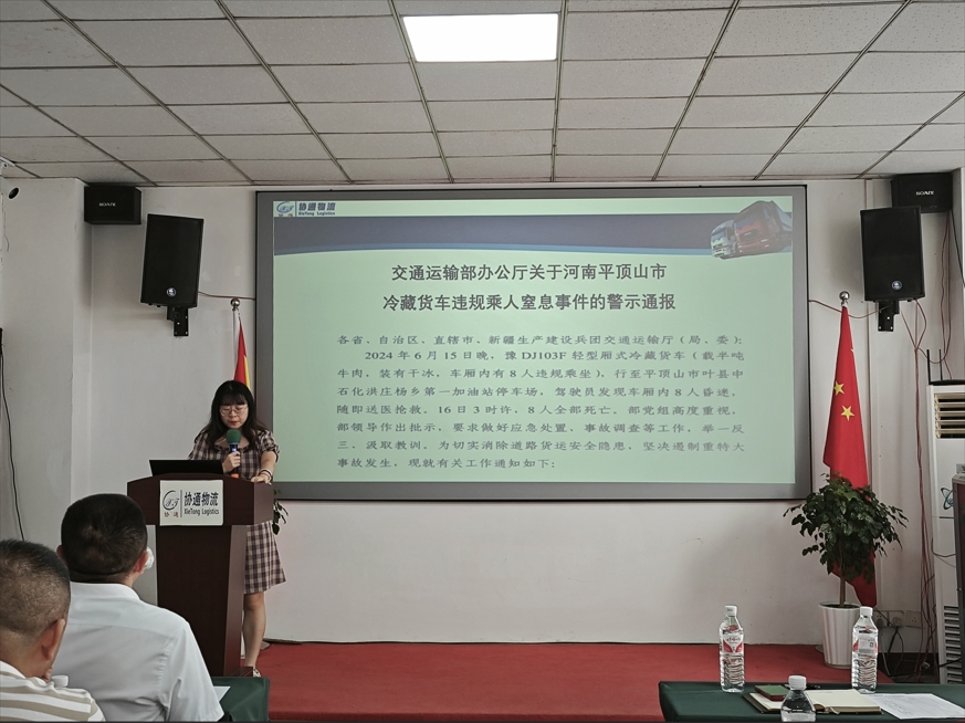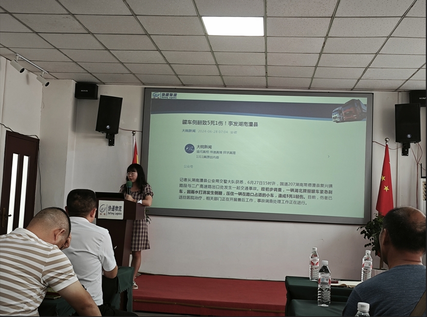 安全部負(fù)責(zé)人唐堯講話,傳達(dá)交通運(yùn)輸部辦公廳關(guān)于河南平頂山市冷藏貨車違規(guī)乘人窒息事件的警示通報(bào)傳達(dá)渝交便函〔2024〕1103 號(hào)重慶市交通運(yùn)輸委員會(huì)關(guān)于印發(fā)《重點(diǎn)道路運(yùn)輸車輛異常駐車報(bào)警處置工作規(guī)范(試行)》的通知;傳達(dá)渝北道運(yùn)〔2024〕35號(hào)重慶市渝北區(qū)道路運(yùn)輸事務(wù)中心關(guān)于印發(fā)渝北區(qū)道路運(yùn)輸行業(yè)安全生產(chǎn)治本攻堅(jiān)三年行動(dòng)方案(2024—2026年)的通知;傳達(dá)湖南澧縣6.27交通事故案例;渝北道運(yùn)〔2024〕37號(hào)重慶市渝北區(qū)道路運(yùn)輸事務(wù)中心關(guān)于“7·2 ”南川區(qū)道路交通事故的警示通報(bào)等文件精神,要求全體員工認(rèn)真按照上級(jí)文件精神做好安全生產(chǎn)各項(xiàng)工作。